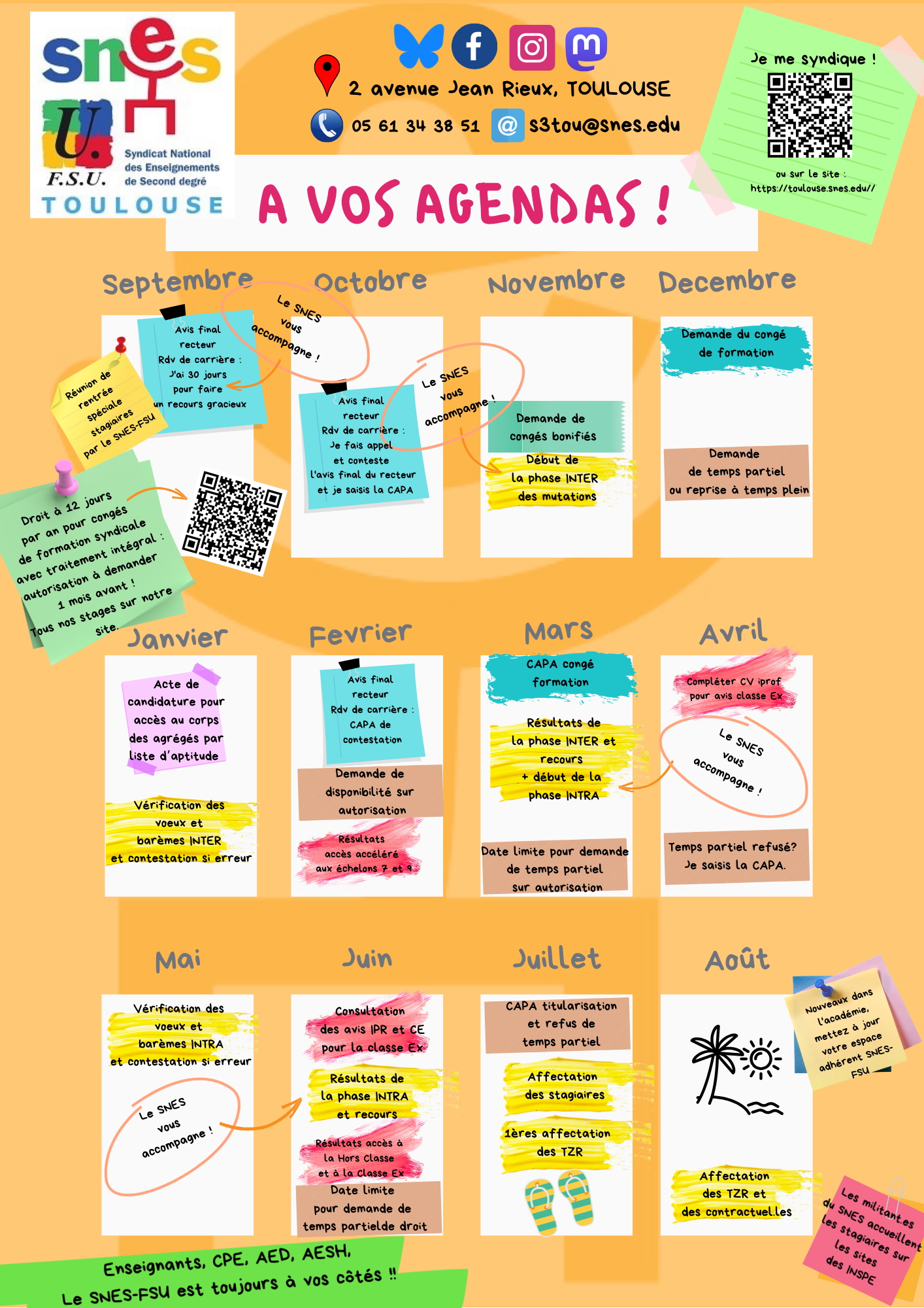 Il est évidemment indicatif puisqu’il dépend en partie du rectorat, mais il permet d’identifier des périodes de l’année à suivre, et au cours desquelles solliciter le SNES-FSU pour être conseillé