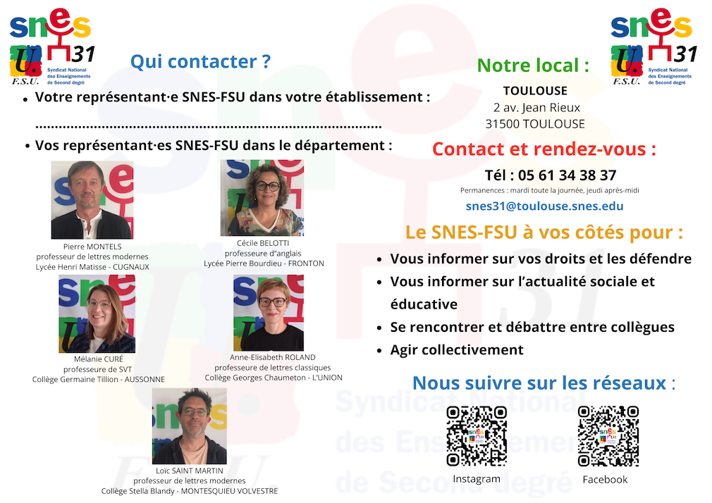 Uniquement pour les S1, et les questions relatives à la vie des établissements de la Haute-Garonne : 05 61 34 38 37 ou 06 58 52 46 32.